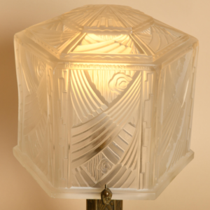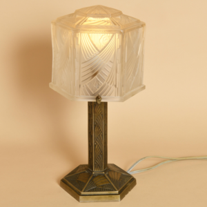 Lampe à pétrole en bronze, marbre et verre incrusté d’or – XIXe siècle