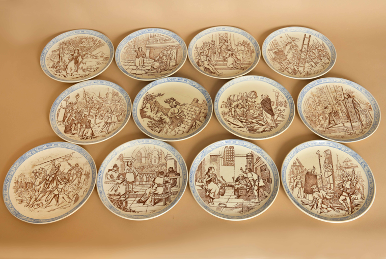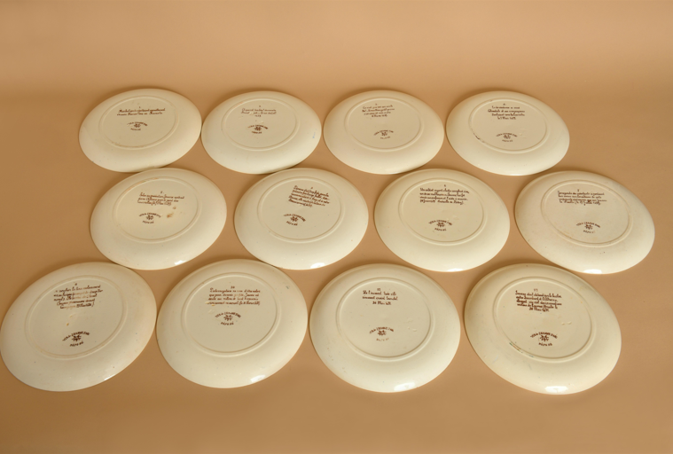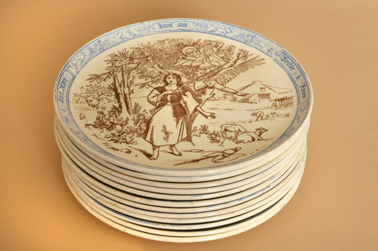 Rare ensemble de 12 assiettes à desserts en faïence fine de la manufacture Creil & Montereau.