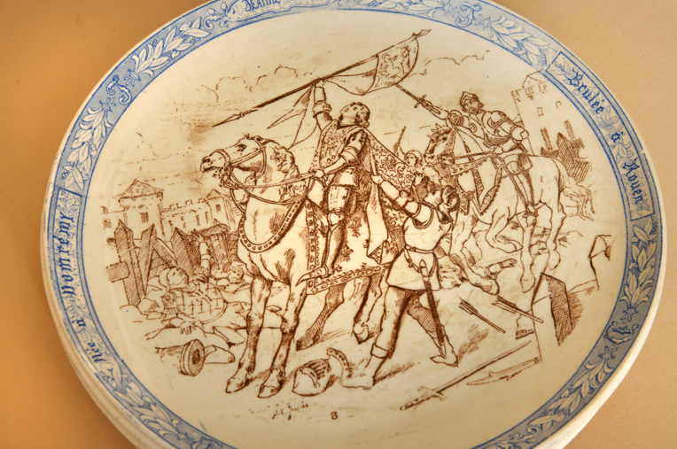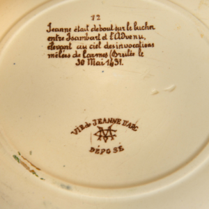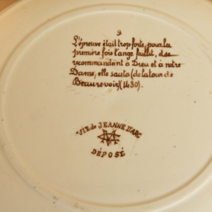 Chaque pièce illustre un épisode de la vie de Jeanne d’Arc, avec légende au dos.