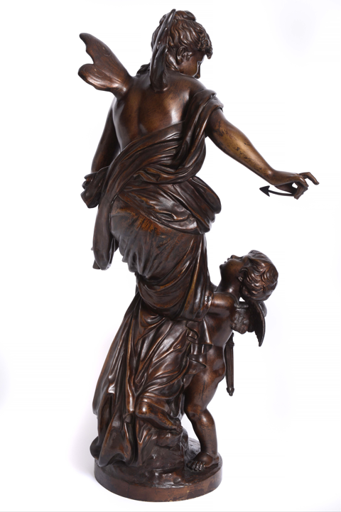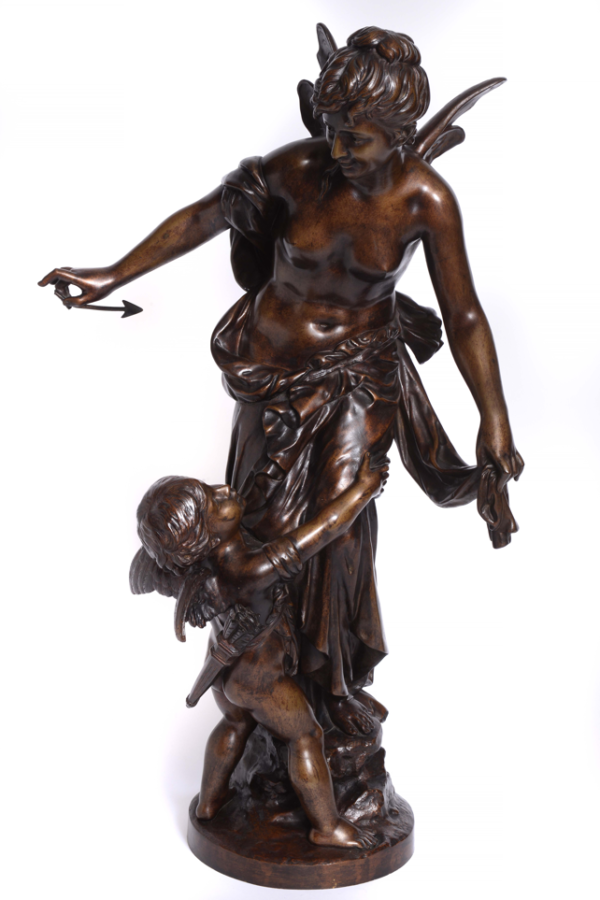 L’œuvre s’inscrit dans un style académique et romantique, typique du XIXe siècle, influencé par la mythologie et les grands récits antiques. Elle évoque l’amour divin et humain dans une représentation empreinte de douceur et de raffinement, fidèle aux canons esthétiques de l’époque.