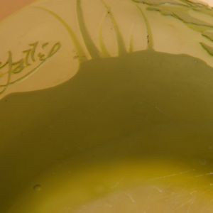 Superbe coupe signée Gallé – Verre gravé à l’acide – Ton vert et jaune