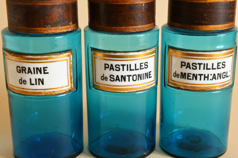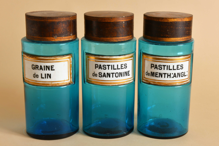 Charmant ensemble de trois pots à pharmacie d’époque, témoins du savoir-faire des anciennes officines. Ces pièces décoratives, autrefois destinées à conserver poudres, onguents ou préparations médicinales, séduisent par leur esthétique authentique et leur caractère historique.